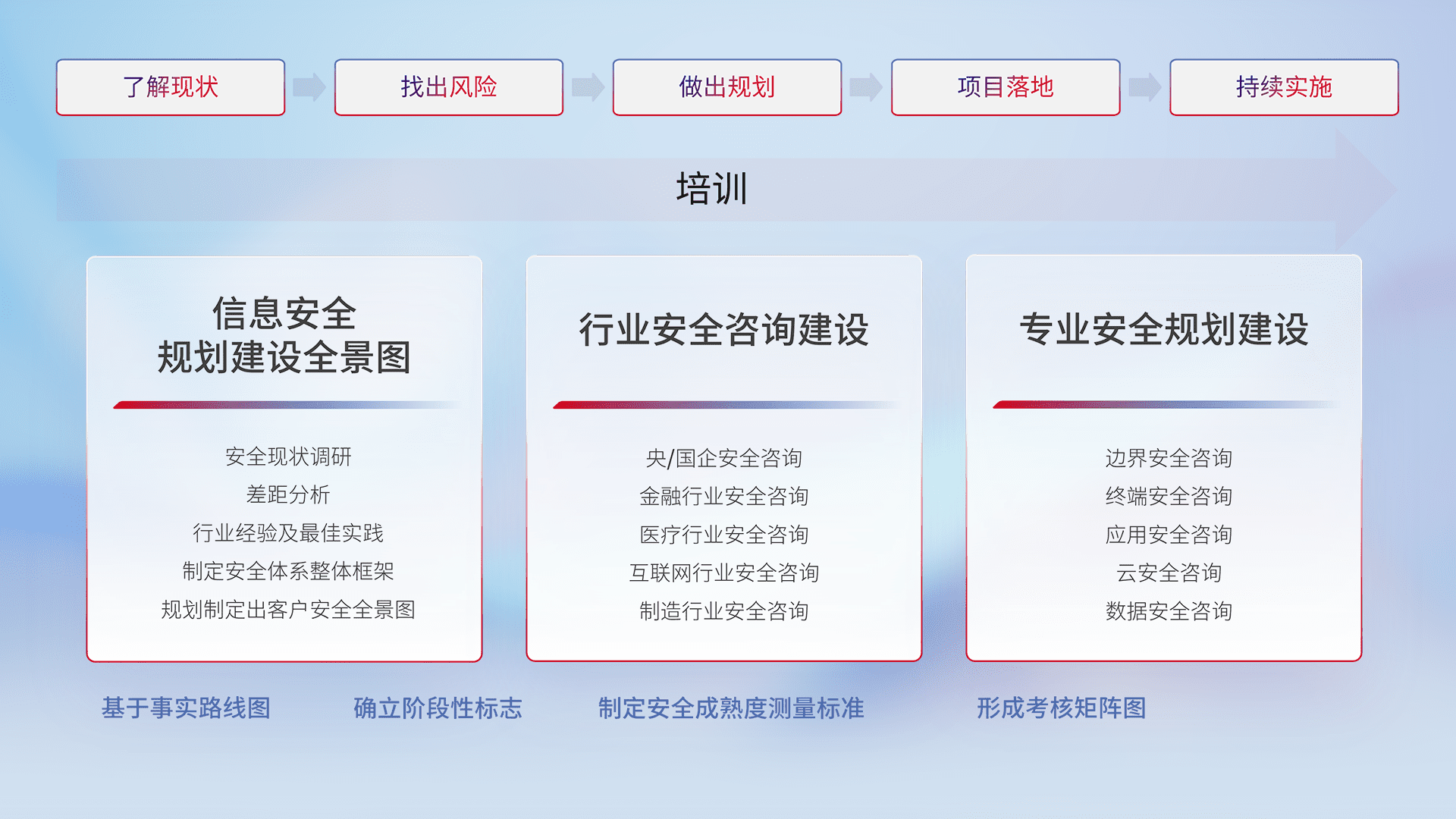 梳理客户信息安全现状调研、、差距分析结果,,,,结合行业先进经验及最佳实践,,制订客户的信息安全管控体系总结架构,,,,最终形成一个完整的客户信息安全规划与建设的全景图。。。