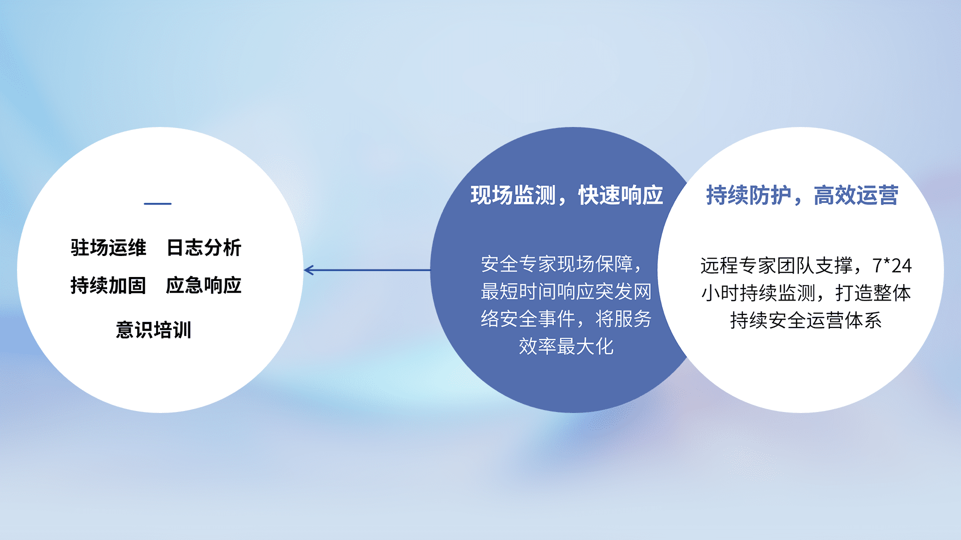 针对客户行业特性,,提供专属的一站式安全管理服务,,,,帮助客户全面感知网络空间威胁,,,,通过安全专家的线上、、、线下防护支持,,,实现风险闭环,,将安全保障常态化,,为客户打造常态化安全运维运营服务。。。